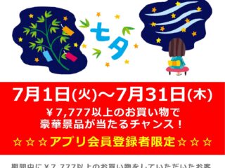 期間中に10,000円以上のお買い物をしていただいたお客様に、素敵な景品が当たるチャンス!!