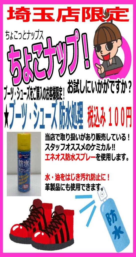ブーツ・シューズ 防水処理 税込み 100円