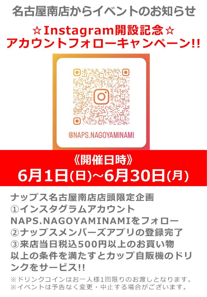 ナップス名古屋南店のInstagramを新規でフォロー または 現在フォローしている方が限定。