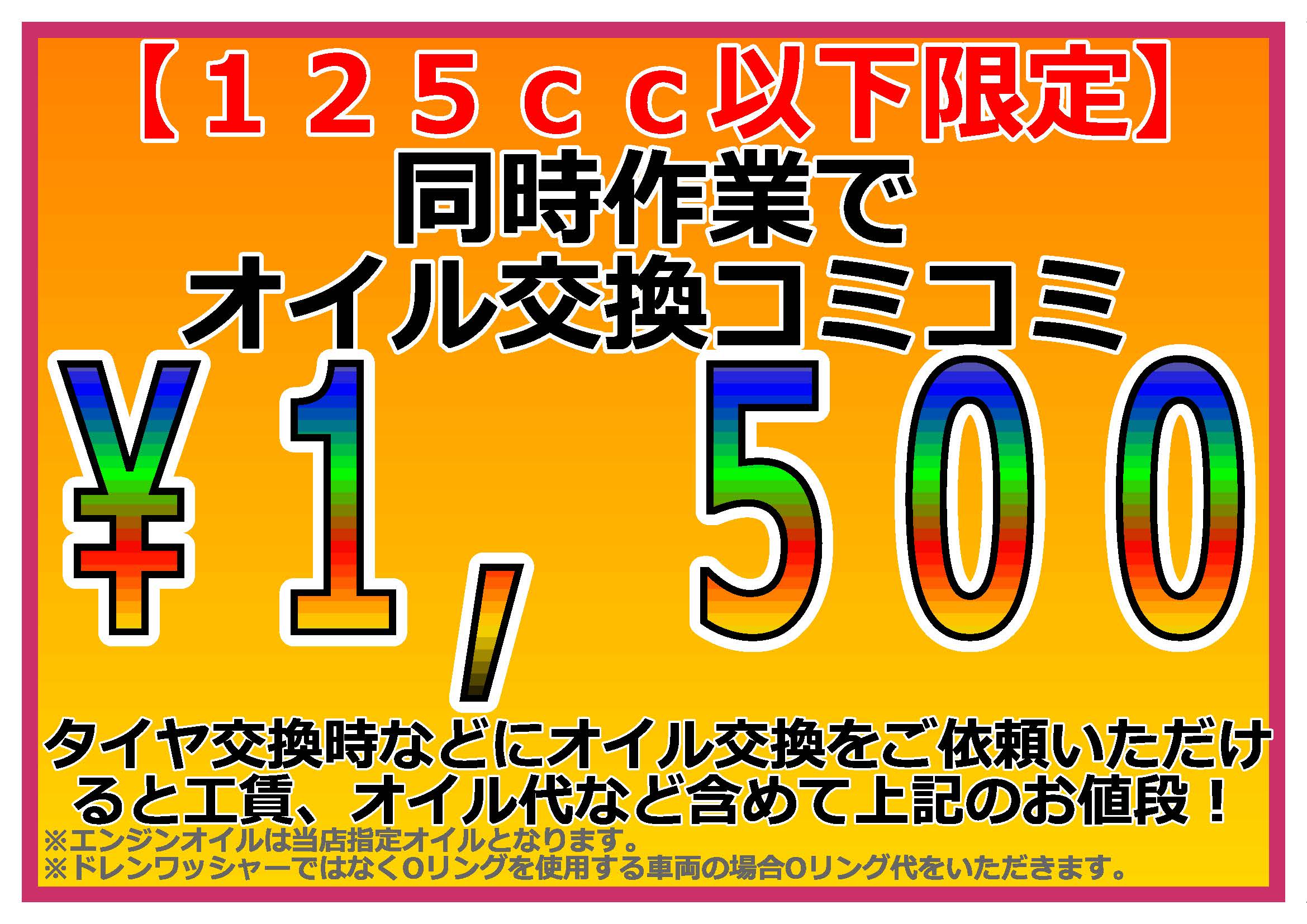 工賃・オイル代を含めてオイル交換が¥1,500-(税込)に!