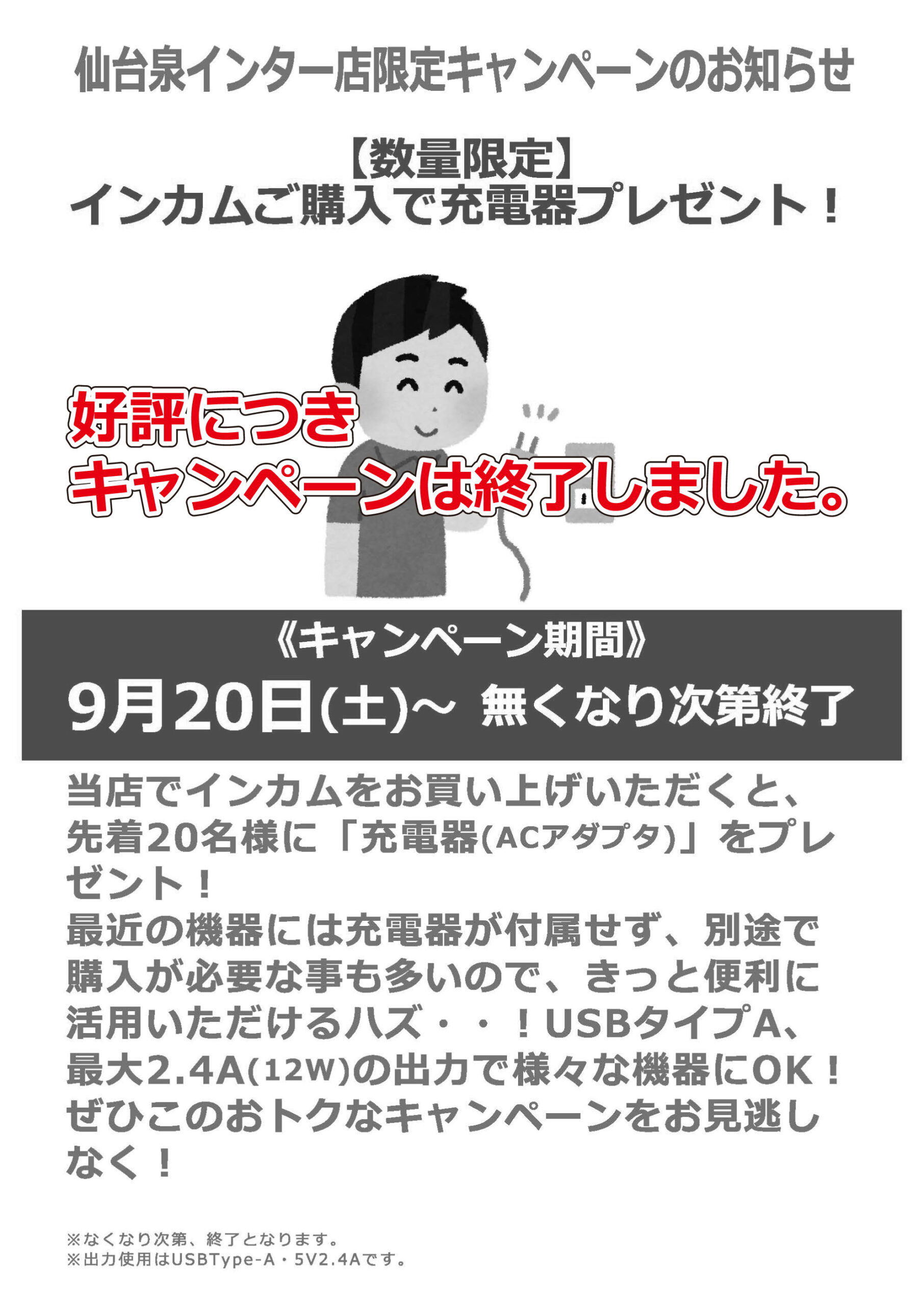 当店でインカムをお買い上げいただくと、先着20名様に「充電器(ACアダプタ)」をプレゼント!