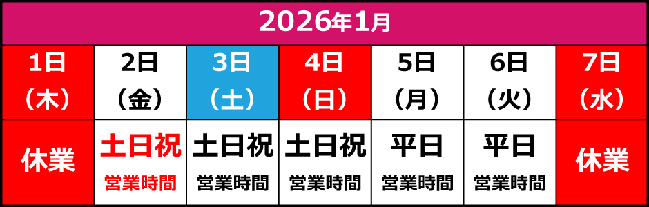■お問い合わせ休業日:2025年12月27日(土)から2026年1月4日(日)