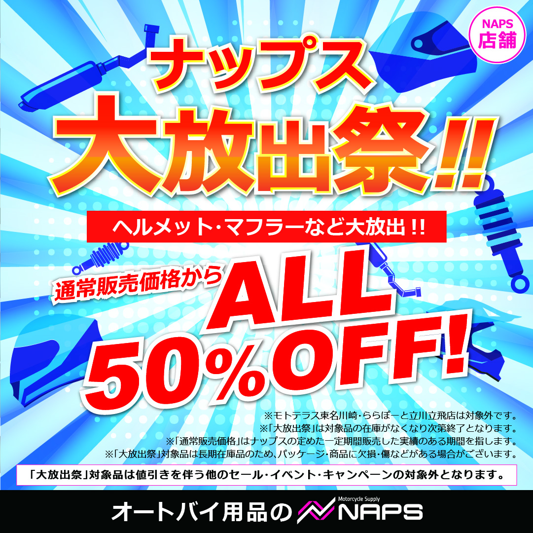 4/26(土)より全国のナップス各店(一部店舗を除く)で、「ナップス大放出祭」 を開催します。