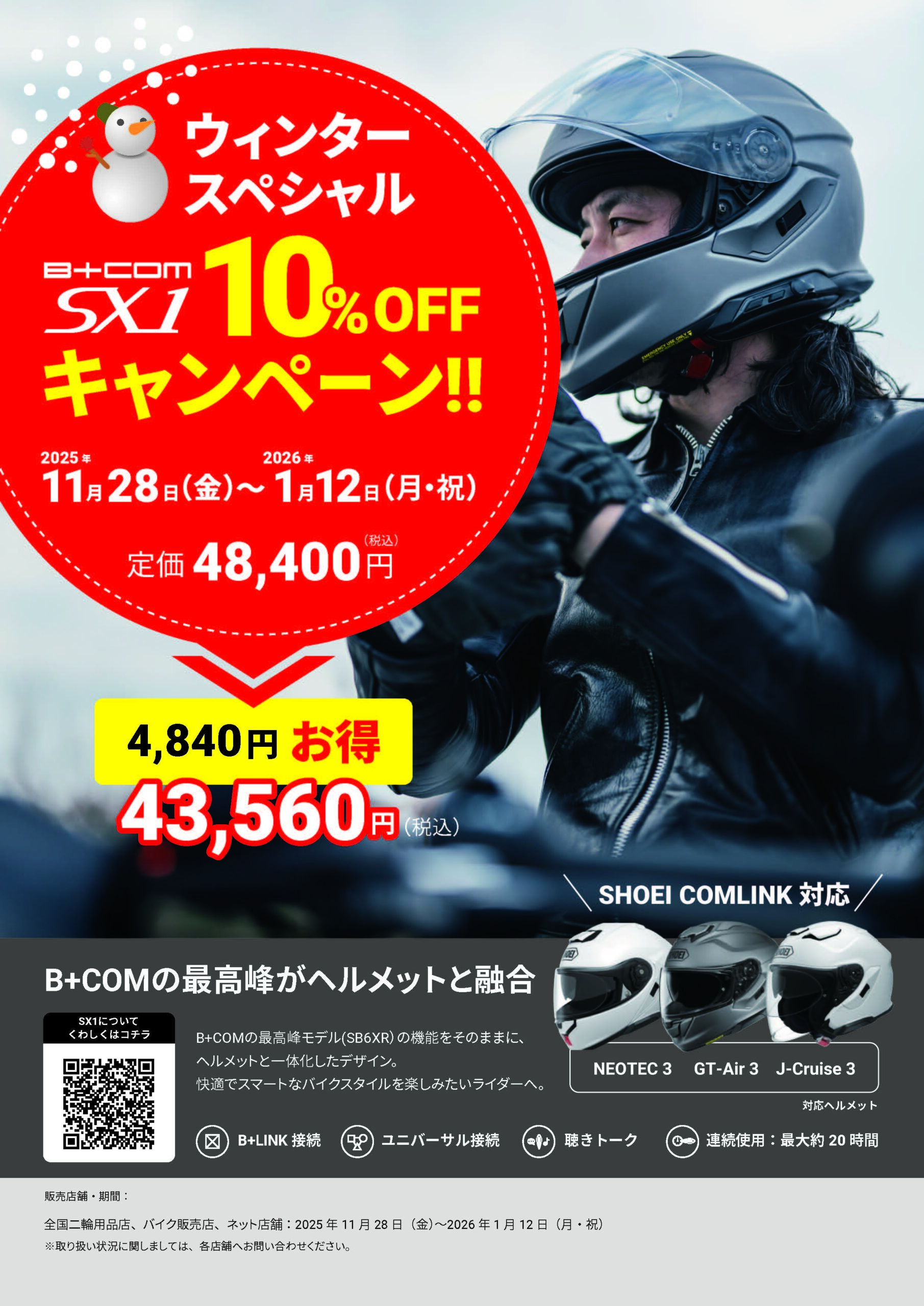 「B+COM SX1 10%OFF キャンペーン」を開催します。