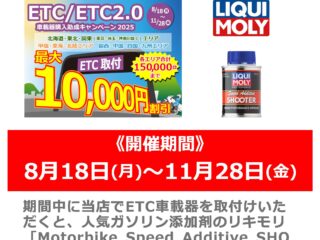 福岡店にてETC車載器の取付をいただいたお客様に人気ガソリン添加剤のリキモリ「Motorobike Speed Additive SHOOTER」を一本プレゼント!!