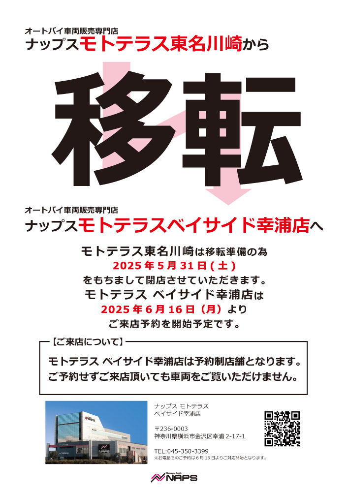 モトテラス東名川崎は移転準備の為、2025年5月31日(土)