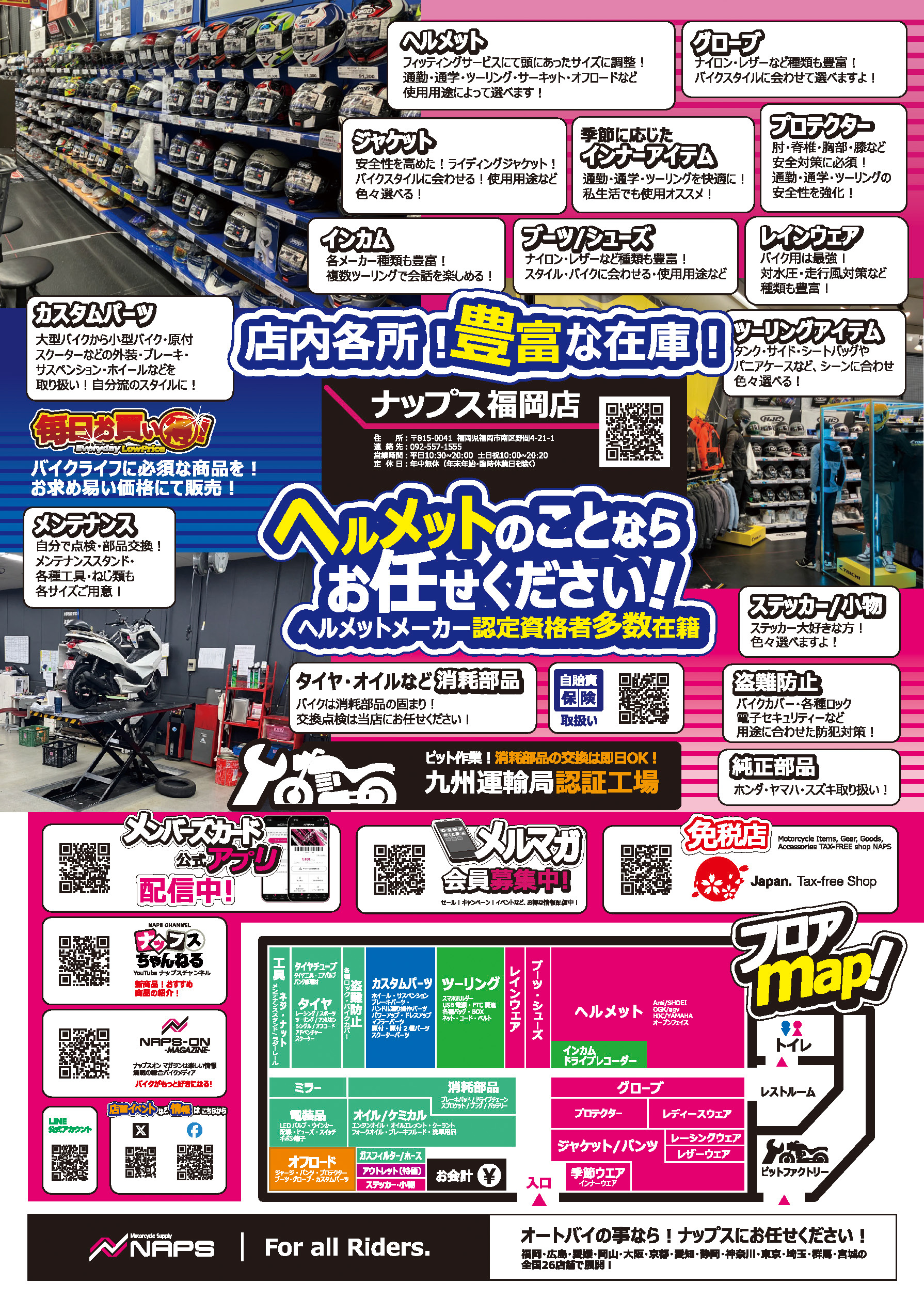 ヘルメットメーカー認定資格者が多数在籍、豊富な店頭在庫が自慢の店舗です。