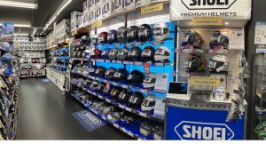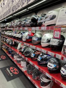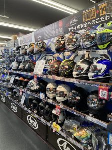 ずらっと並んでいるのはSHOEI、Arai、Kabutoのヘルメットを中心に多数取り揃えています(‘◇’)ゞ