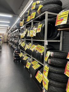奥までずらーとタイヤコーナー!!鍵とバイクカバーは納車前までに揃えるべし(^_-)-☆