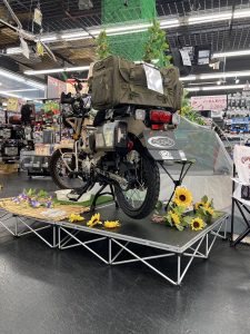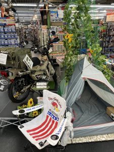 入り口入って直ぐに、いま流行りのキャンプ仕様にデコレーションしたハンターカブ/CT125がお出迎え(*´ω`)